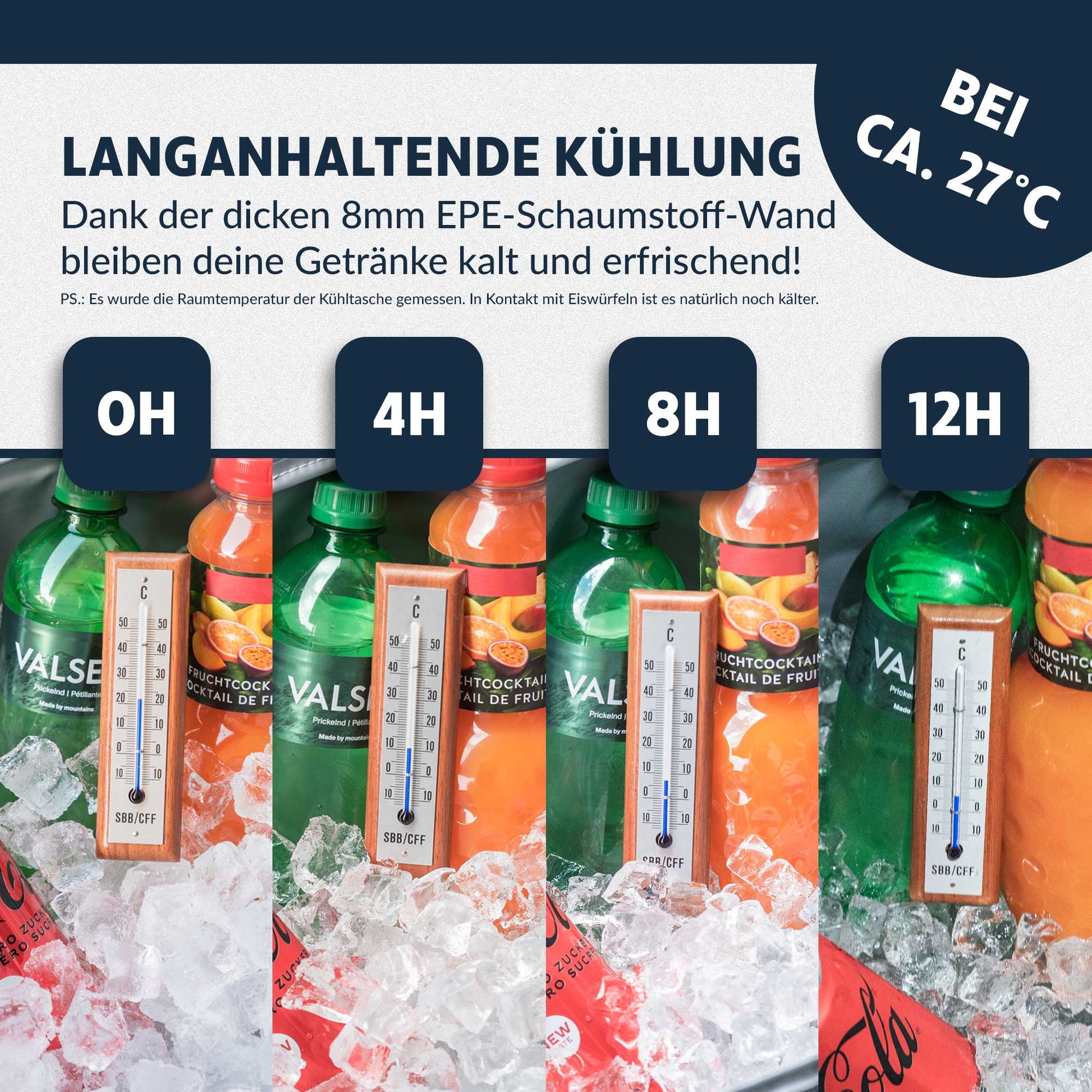 Mit der Kühltasche behalten Sie Ihre Lebensmittel und Getränke den ganzen Tag über kühl! Genießen Sie einen Tag im Park mit der Familie oder Freunden mit dieser und halten Sie Essen und Trinken köstlich kalt. Genießen Sie optimale Abkühlung und eine schöne Zeit und erleben Sie Freude und Abenteuer!