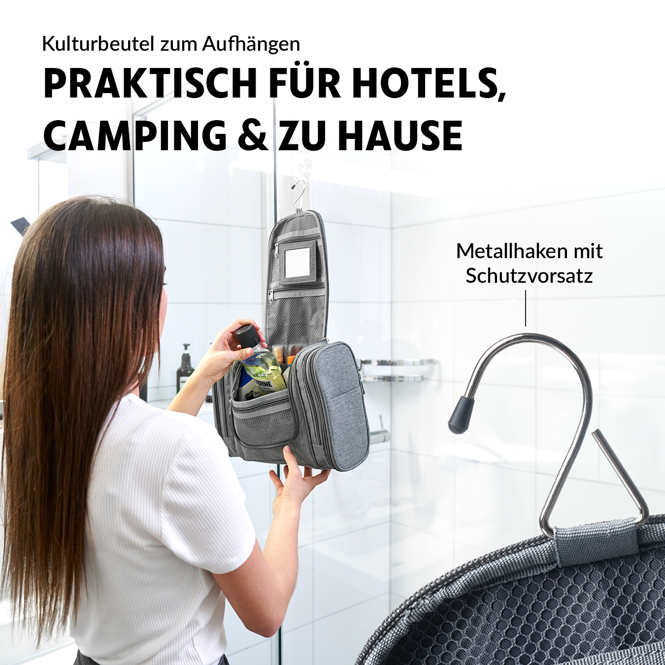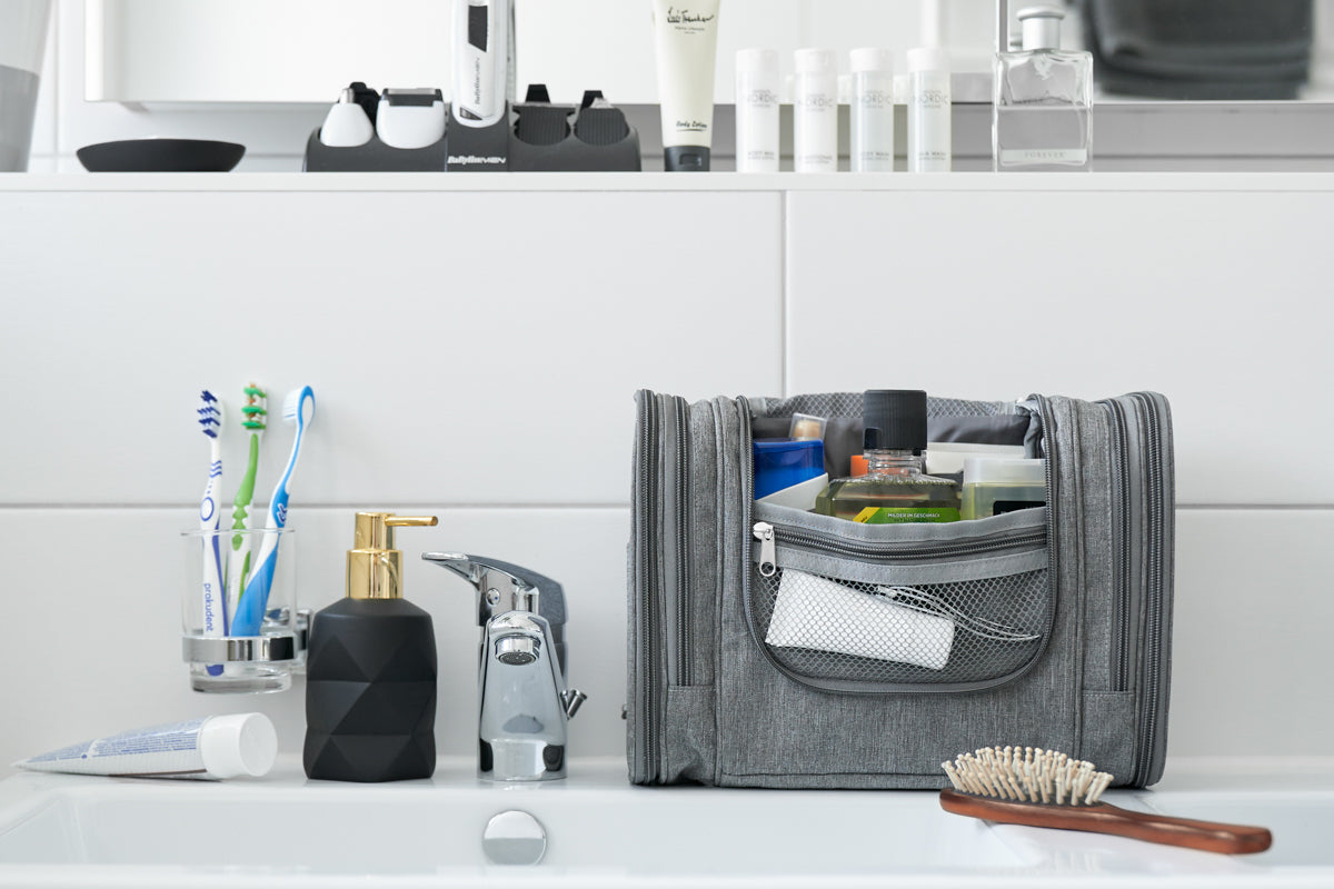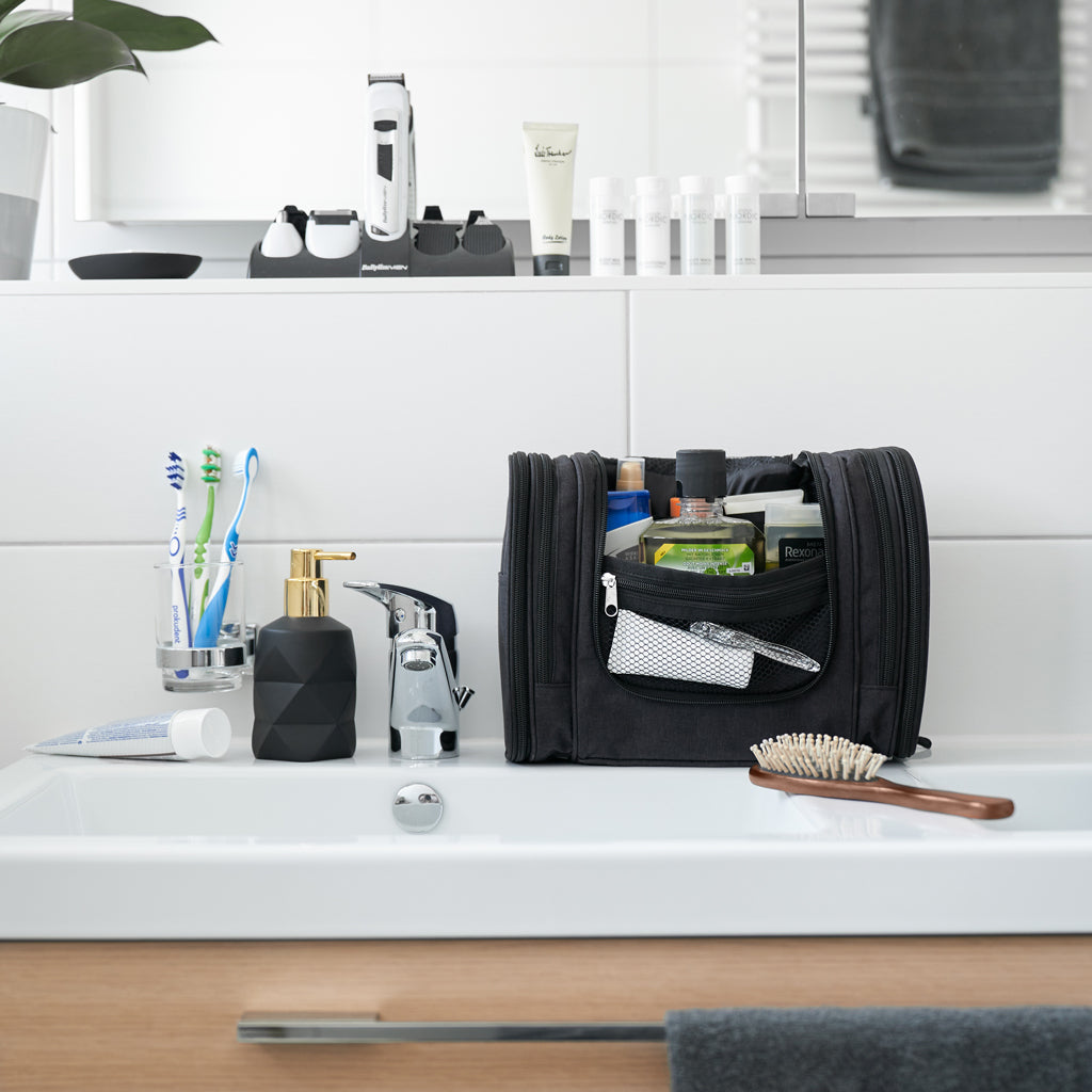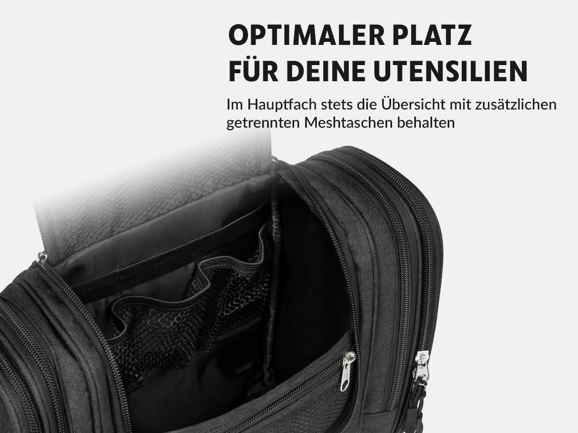 Der Kulturbeutel XXL ist ein praktisches und multifunktionales Accessoire, mit dem Sie alle Ihre Kosmetikprodukte auf Reisen bequem mitnehmen können. Mit 10 Fächern und dem Zahnbürstenfach, ist er ideal für Ihre individuellen Bedürfnisse, einschließlich eines praktischen Spiegels! Außerdem kann er an jeder Tür oder Wand aufgehängt werden, für eine bequeme und komfortable Benutzererfahrung. Wollen Sie Ihr Reisen organisiert und stylish gestalten? Der Kulturbeutel XXL ist die perfekte Wahl!