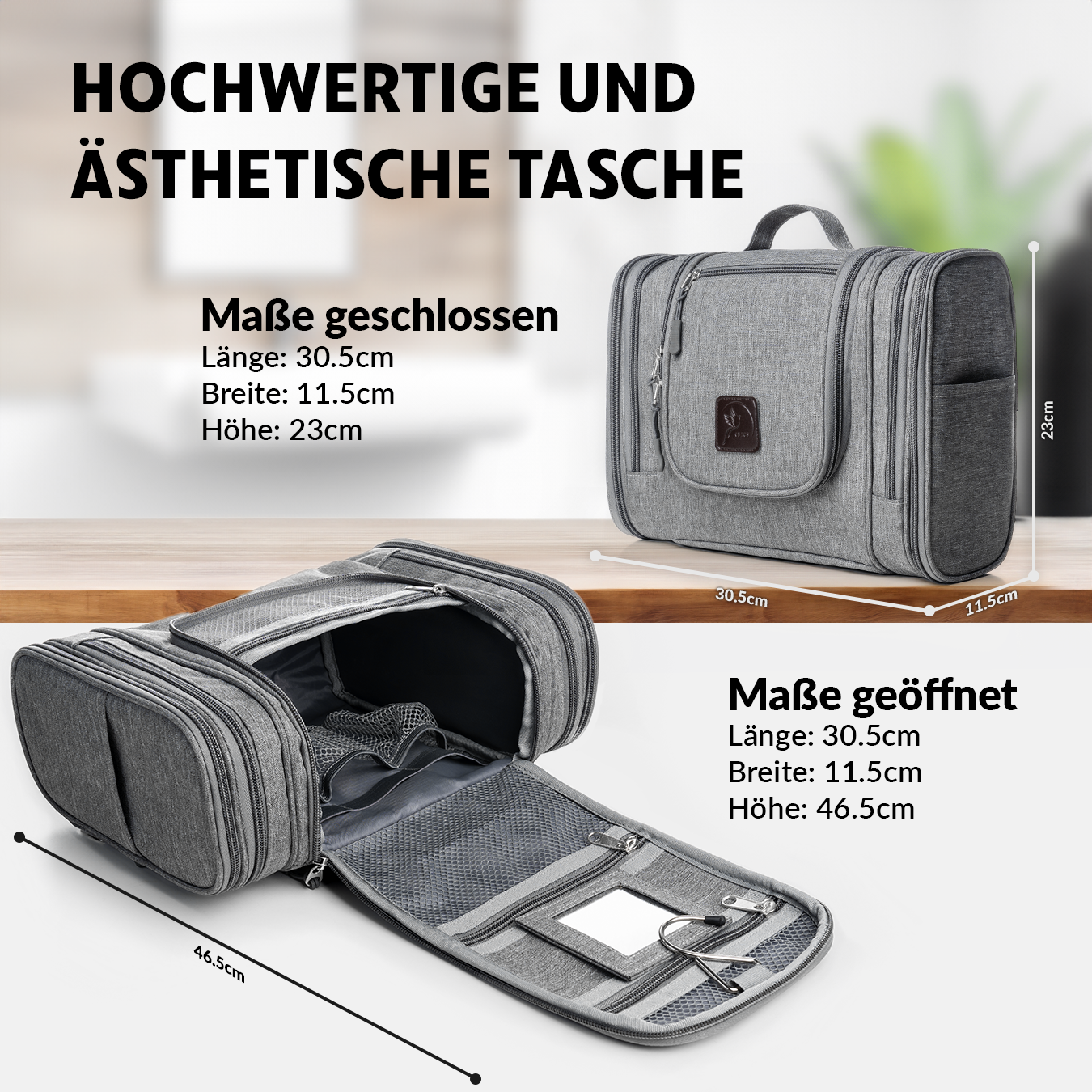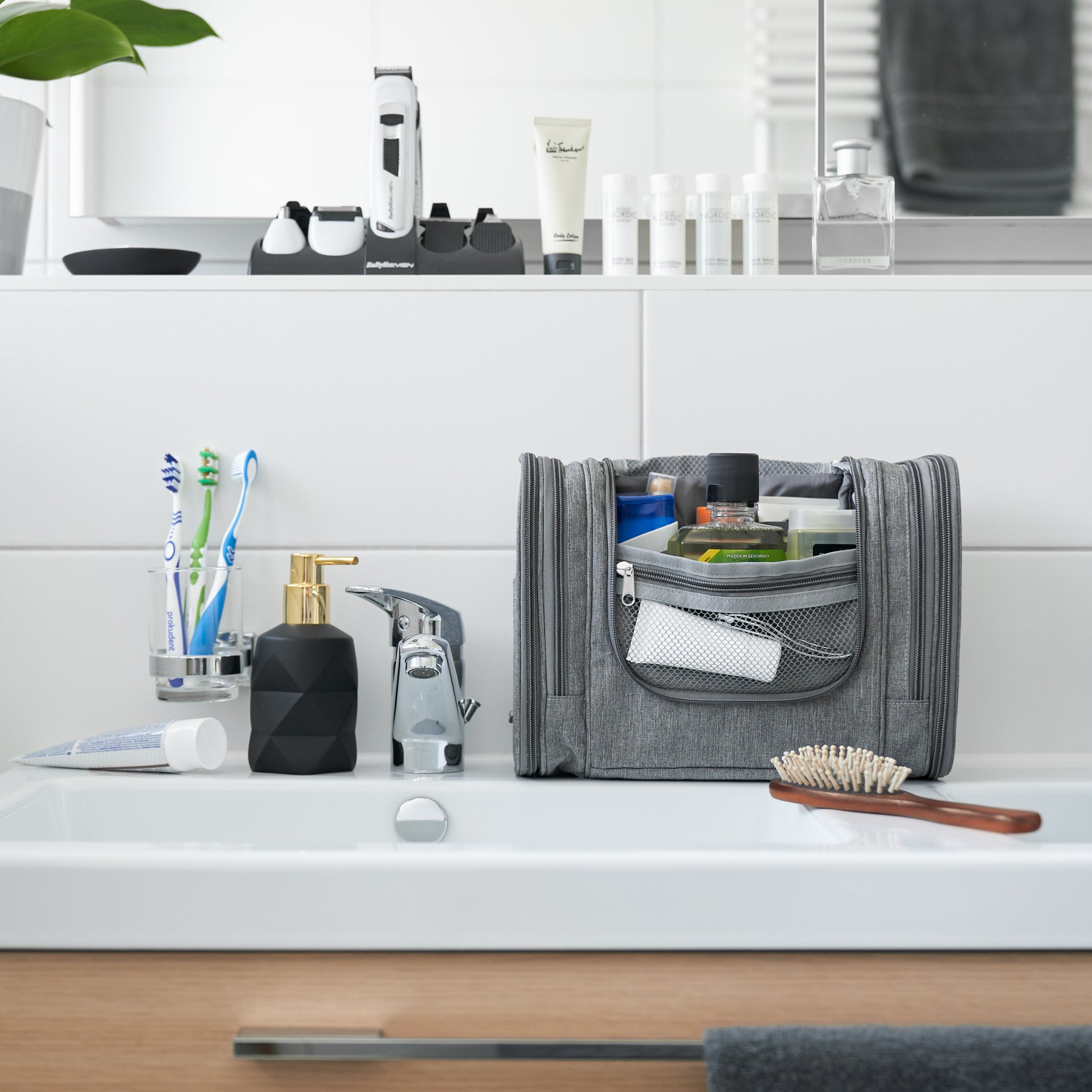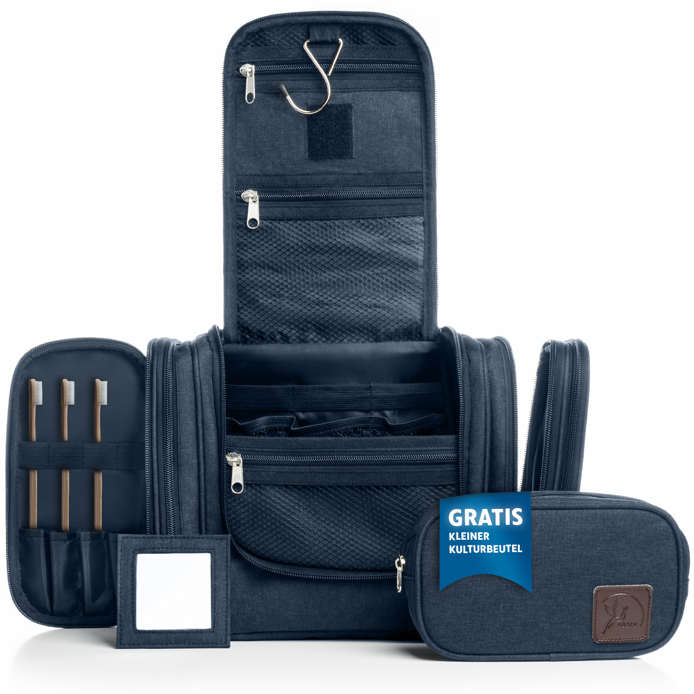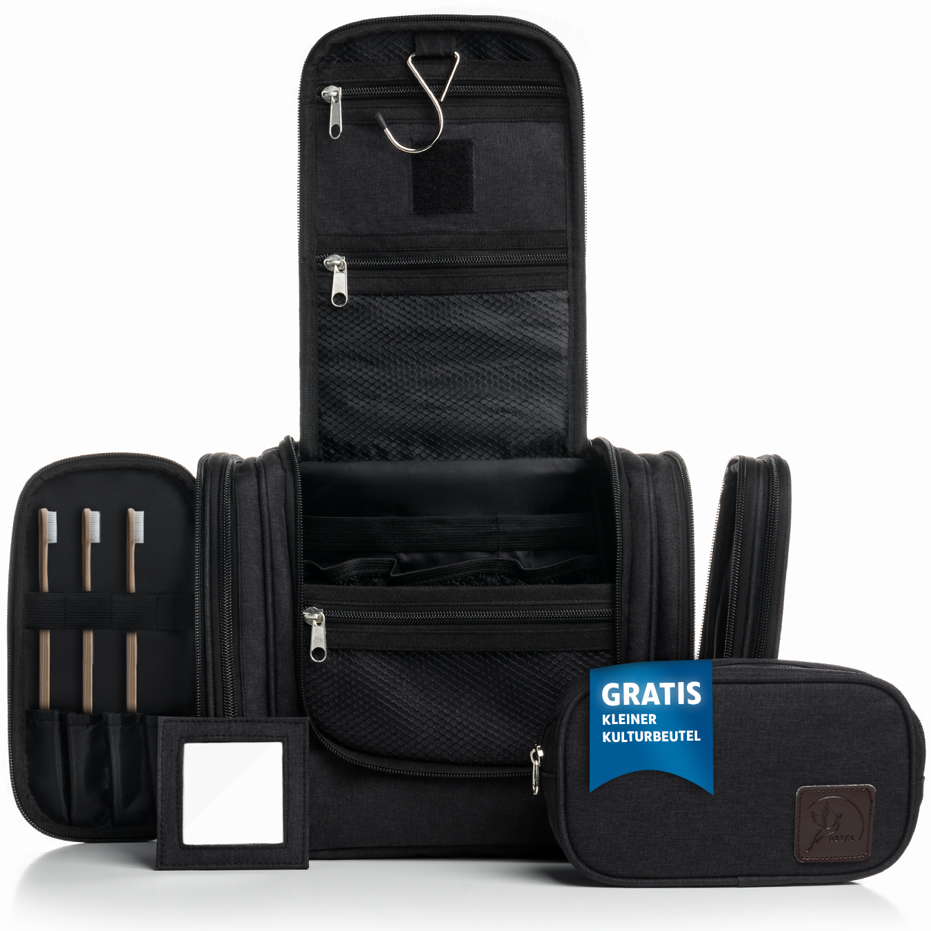Der Kulturbeutel XXL ist ein praktisches und multifunktionales Accessoire, mit dem Sie alle Ihre Kosmetikprodukte auf Reisen bequem mitnehmen können. Mit 10 Fächern und dem Zahnbürstenfach, ist er ideal für Ihre individuellen Bedürfnisse, einschließlich eines praktischen Spiegels! Außerdem kann er an jeder Tür oder Wand aufgehängt werden, für eine bequeme und komfortable Benutzererfahrung. Wollen Sie Ihr Reisen organisiert und stylish gestalten? Der Kulturbeutel XXL ist die perfekte Wahl!